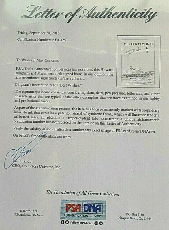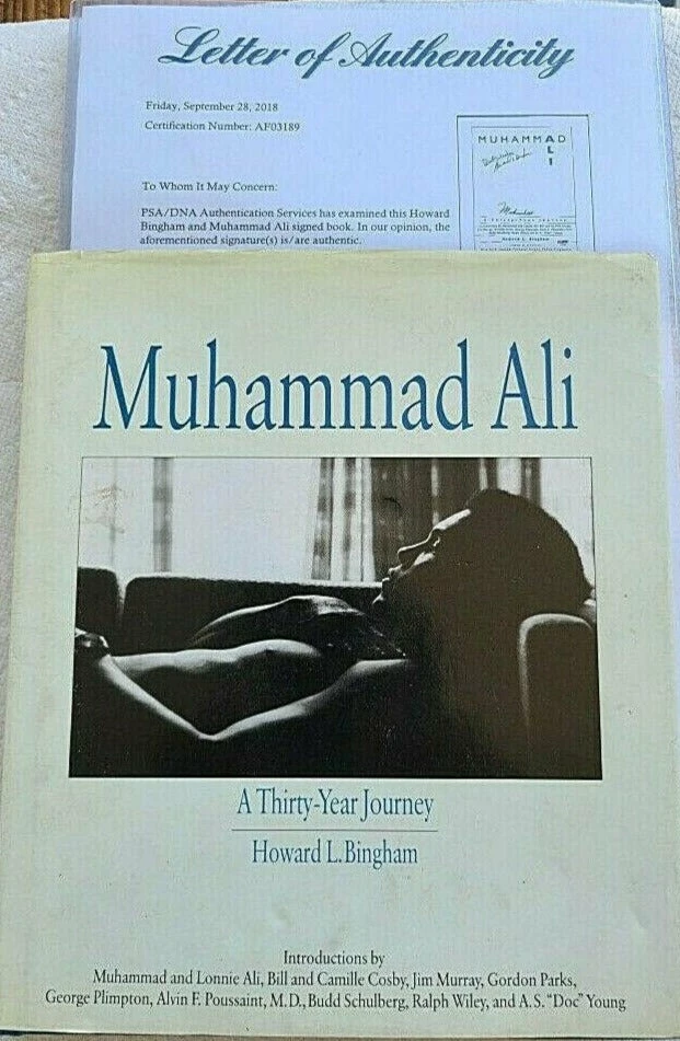 “A Thirty-Year Journey” Signed by Muhammad Ali & the author Howard L. Bingham w/Letter of Authenticity (PSA/DNA). The book is in very good condition with light wear on the jacket. Pages of photos and memories. Authenticity FULL LETTER PSA/DNA |