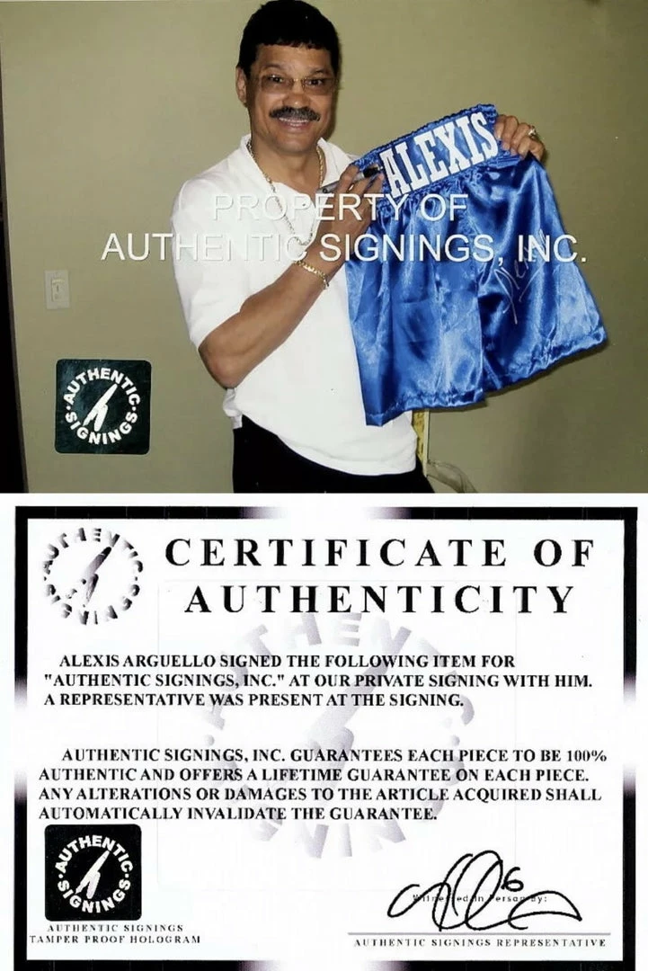 Alexis Arguello Signed Autographed Boxing Custom Rare Trunks ASI Certified.