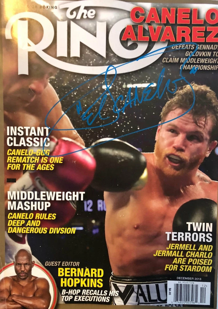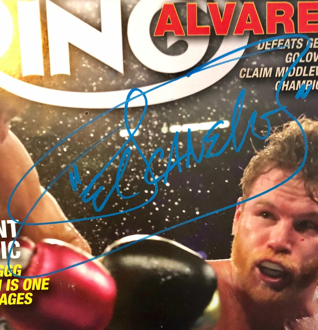 Iconsofboxing.com Boxer Canelo Alvarez Blue Marker Autographed Ring Magazine.