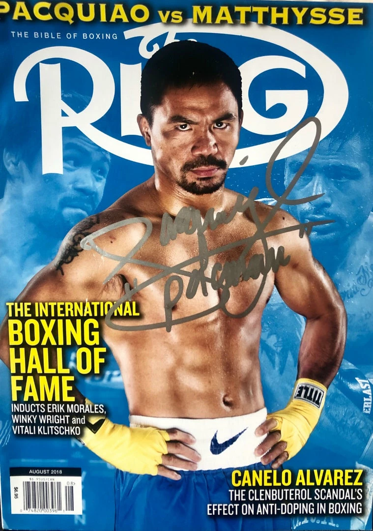 Iconsofboxing.com Boxer Manny Pacquiao Autographed Ring Magazine In Silver Signature, BOXING MEMORABILIA