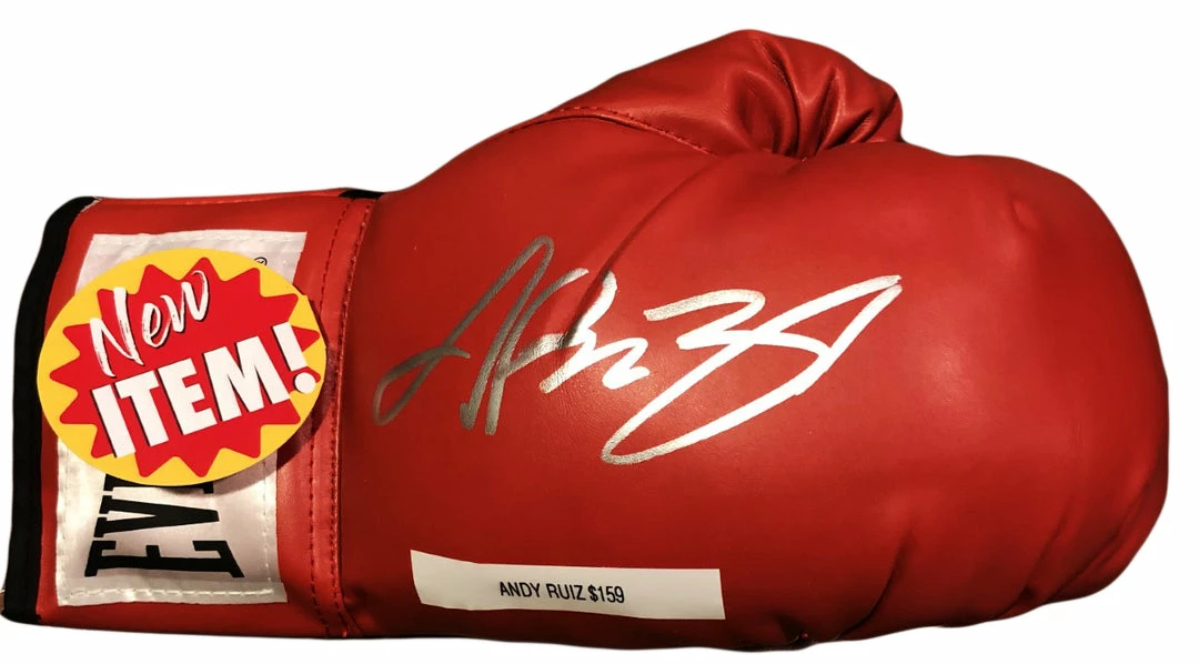Boxing Champion of the Heavyweight Division the Destroyer ANDY RUIZ JR Autograph Signed Rare Red Everlast Boxing Glove in a silver rare auto.