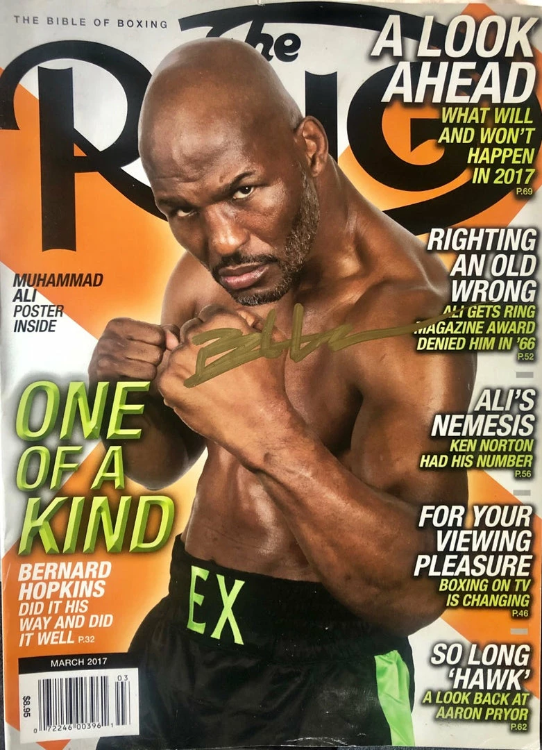 Iconsofboxing.com BOXING MEMORABILIA Boxer Bernard Hopkins Autographed Ring Magazine In Gold Signature,