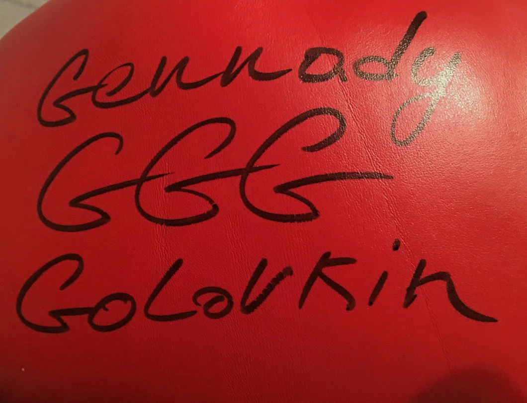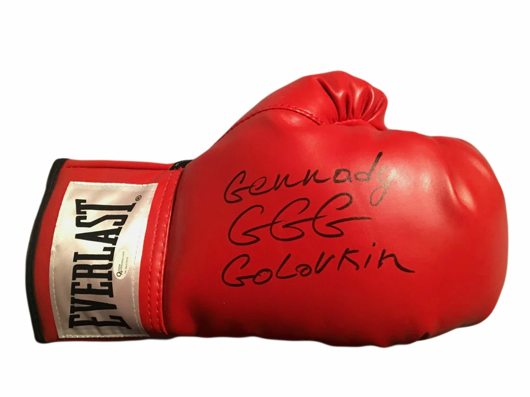 Iconsofboxing.com BOXING MEMORABILIA Boxer Gennady Golovkin Autographed Everlast Gold Boxing Glove In Black Signature