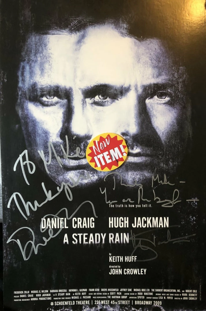 Daniel Craig Hugh Jackman signed autographed playbill Poster a steady rain, ULtra Rare Play Bill poster Actors and movie memorabilia fans!