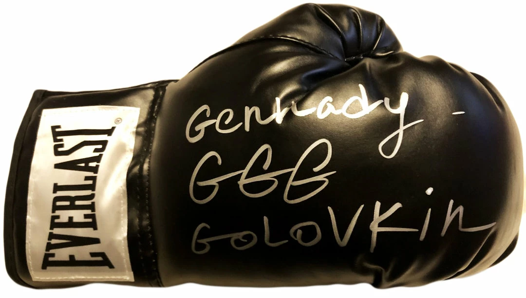 Iconsofboxing.com BOXING MEMORABILIA Gennady Golovkin Autographed Everlast Black Boxing Glove In Silver Signature