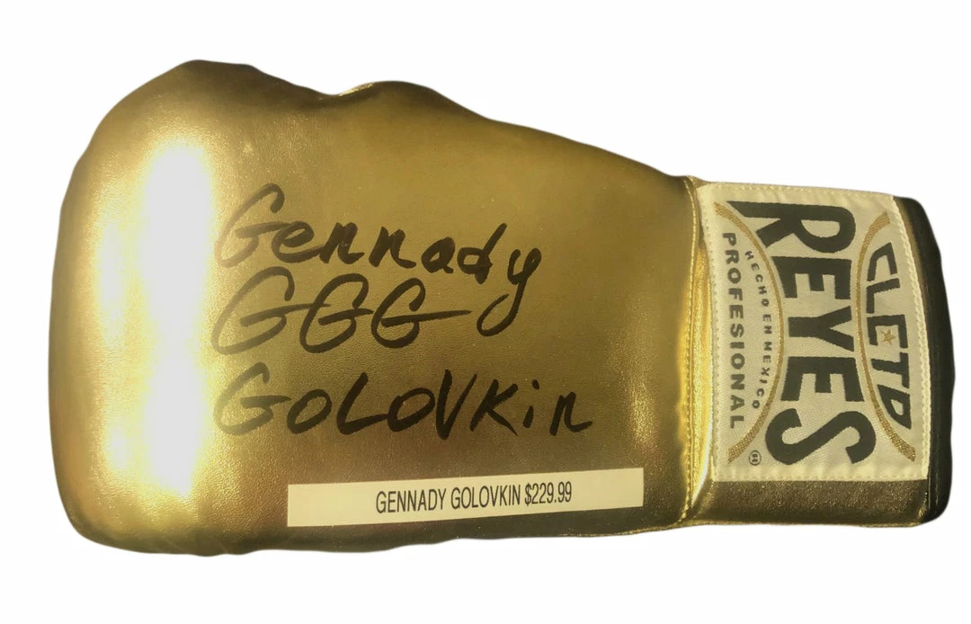 Be the first to review “Iconsofboxing.com BOXING MEMORABILIA Gennady Golovkin Autographed Reyes Gold Boxing Glove In Black Signature” Cancel reply