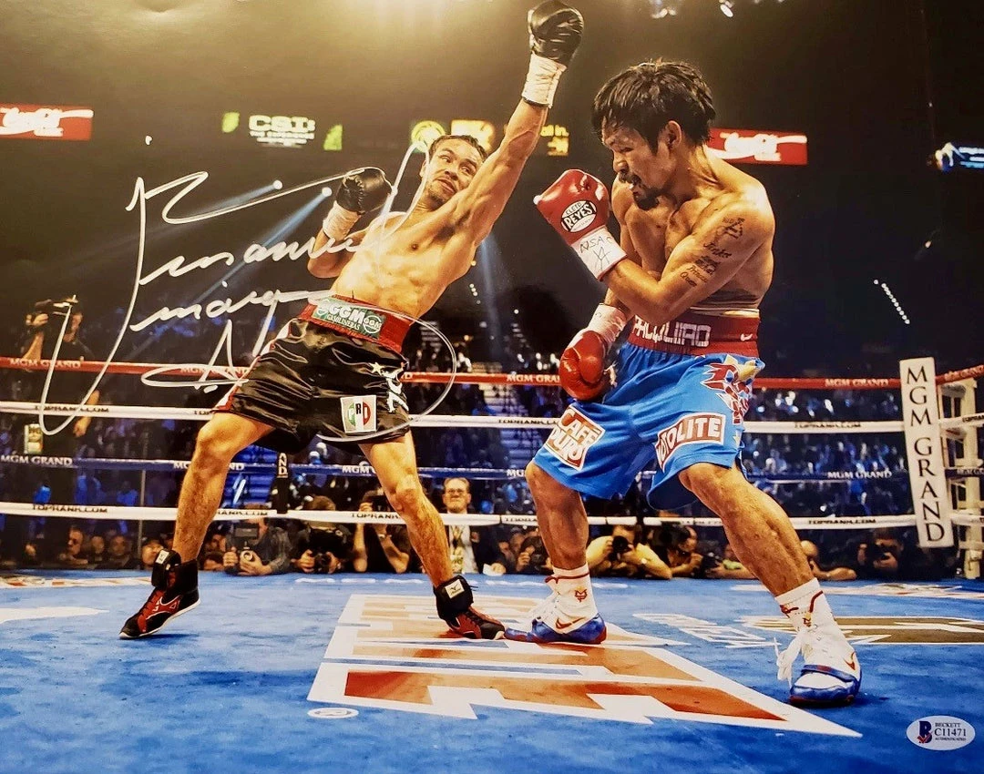 Juan Manuel Marquez vs. Manny Pacquiao Autographed 11×14 signed Boxing photo, Beckett cert. Comes fully certified with Beckett Certificate of Authenticity and tamper-evident hologram. Also backed by www.iconsofboxing Authenticity Guarantee!