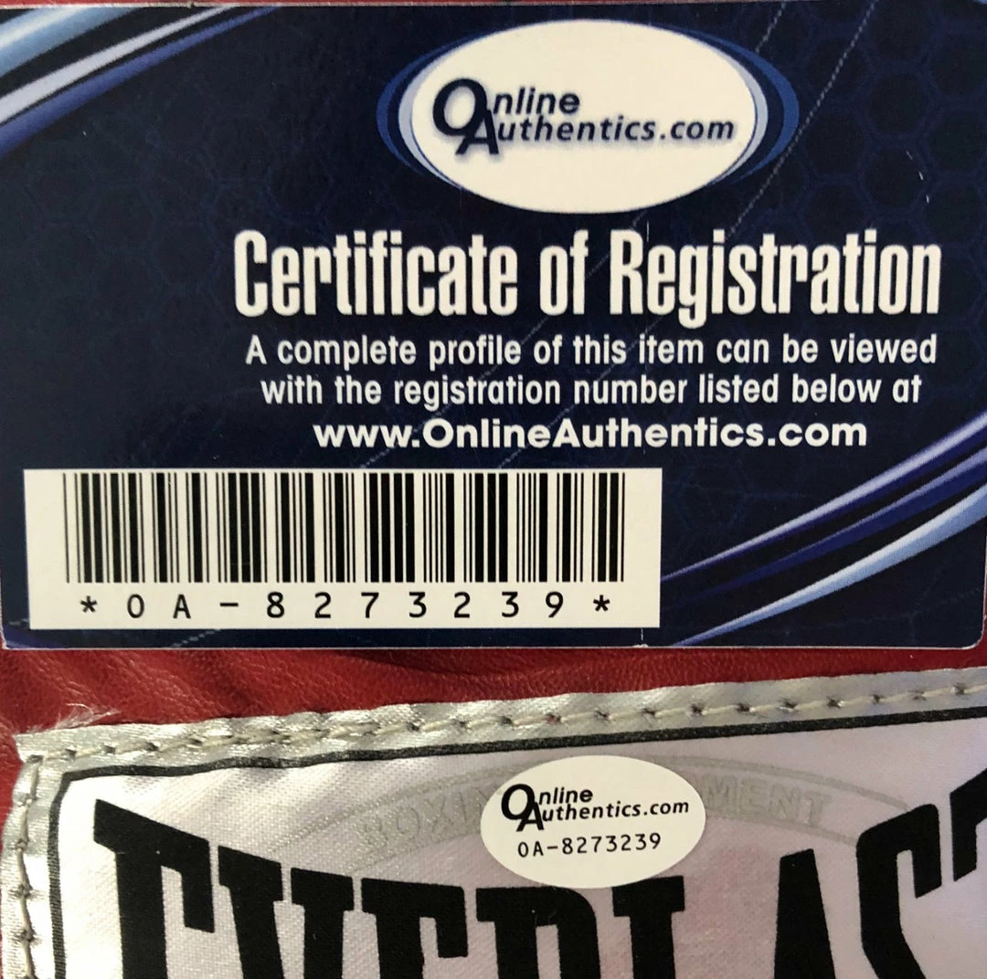 Comes fully Online Authentics certified with also OA Card. And tamper-evident hologram with serial number and data base. Also backed by iconsofboxing.com Authenticity Guarantee.