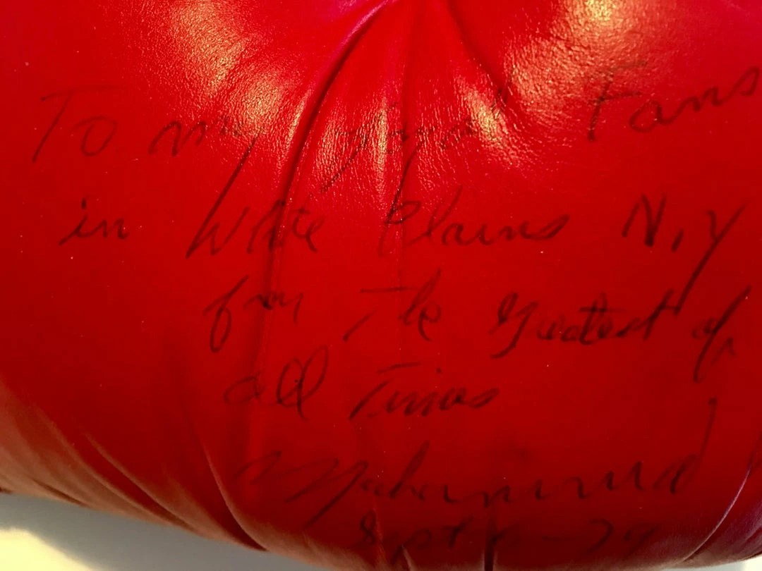 Be the first to review “Iconsofboxing.com BOXING MEMORABILIA Muhammad Ali Autographed Vintage Boxing Glove With Added Inscription And Dated With Full Letter JSA” Cancel reply