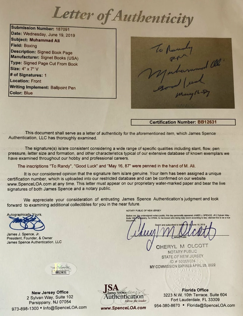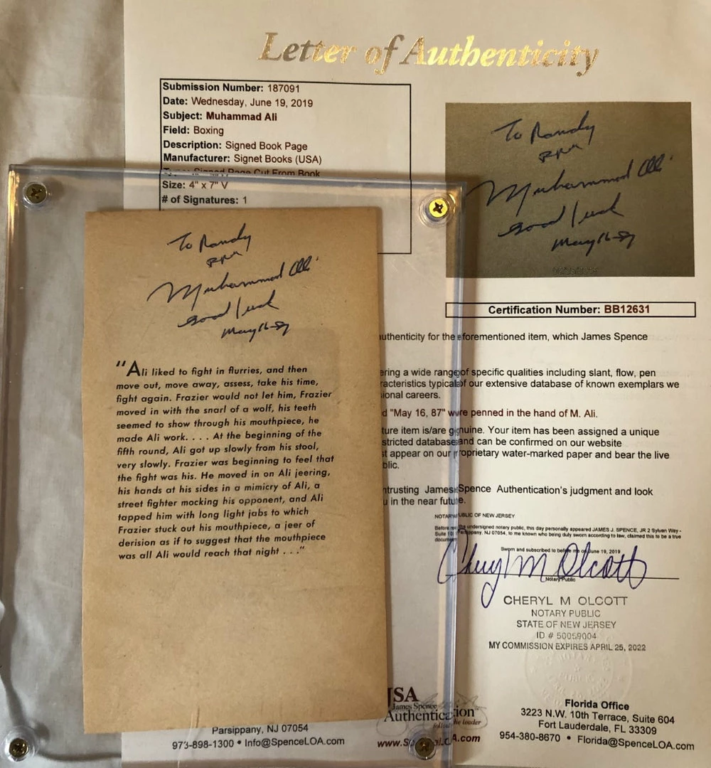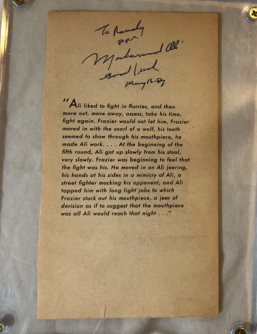 Muhammad Ali Deluxe Protected Autographed Cut And Hand Written inscription JSA Full letter. This is a very Rare and Vintage Autographed signed signature of the Greatest of All Time, Muhammad Ali. A signed Cut is a Great way to own a piece of Boxing History! Looks great anywhere! Even makes a great gift idea.