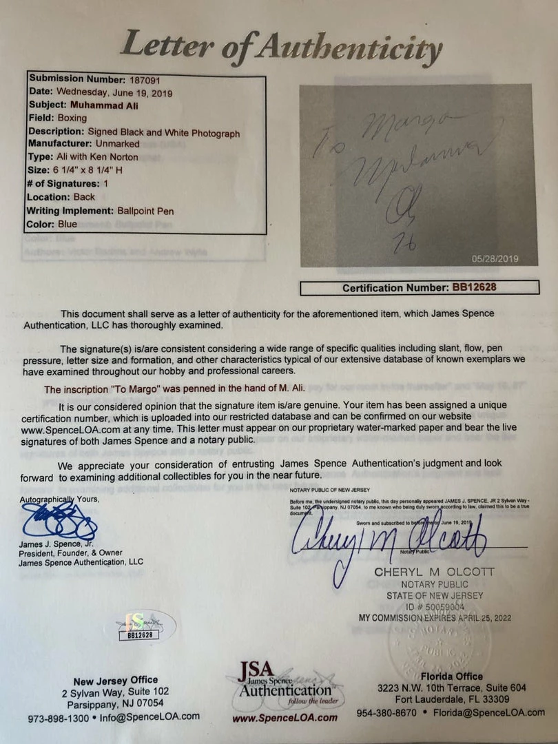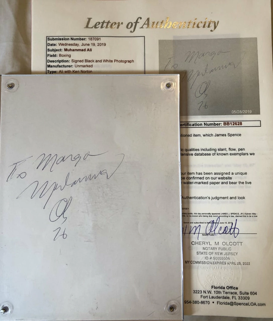 Iconsofboxing.com BOXING MEMORABILIA Muhammad Ali Deluxe Protected Autographed Cut And Hand Written Inscription JSA