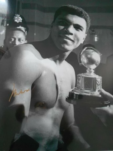 Iconsofboxing.com BOXING MEMORABILIA Muhammad Ali Signed Color 30 X 40 Size B/W Photo Online Authentics