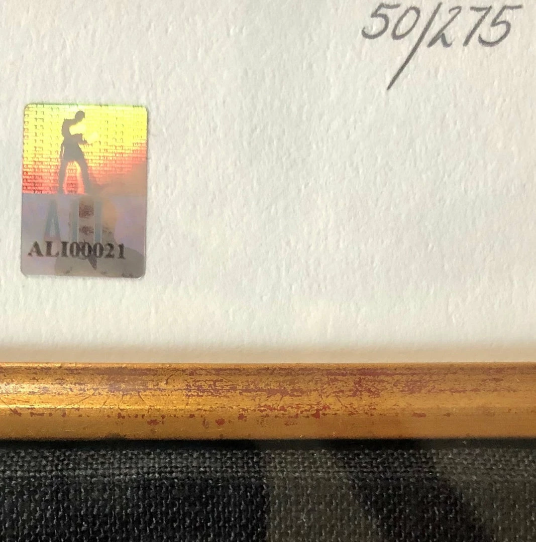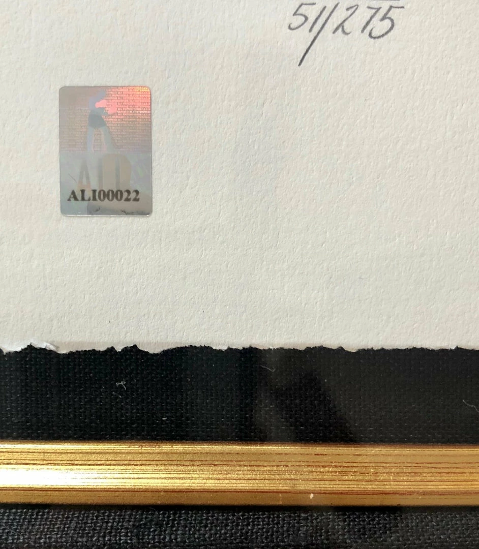 Appraised by Park West galleries for $5,500.00 This is a great example of Ali’s Life in London, Photo is Called “One in a Million” as Far as a great Silver signature with a great Investment in a Ali Gigantic rare size photo. Retail Value may be in the upwords of 6K Plus Muhammad Ali Company Cert (MAE) Ali co. Limited Edition Framed Photo, I have 3 in stock!