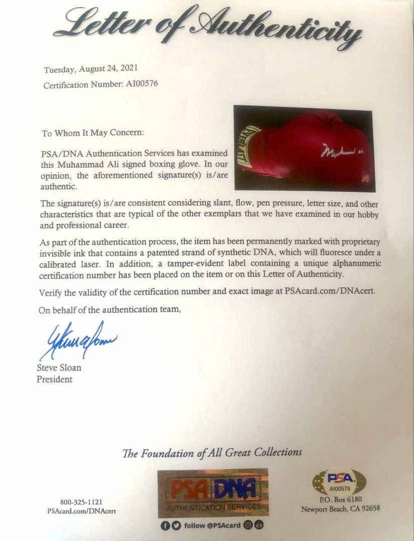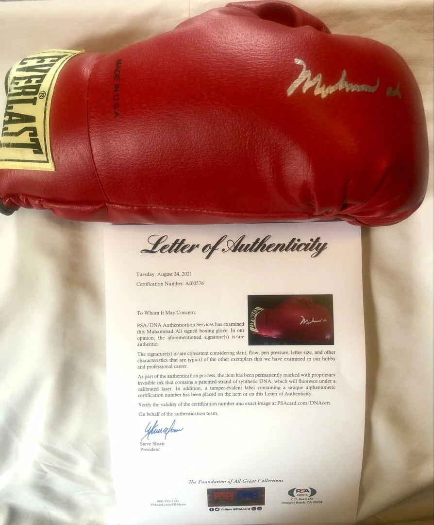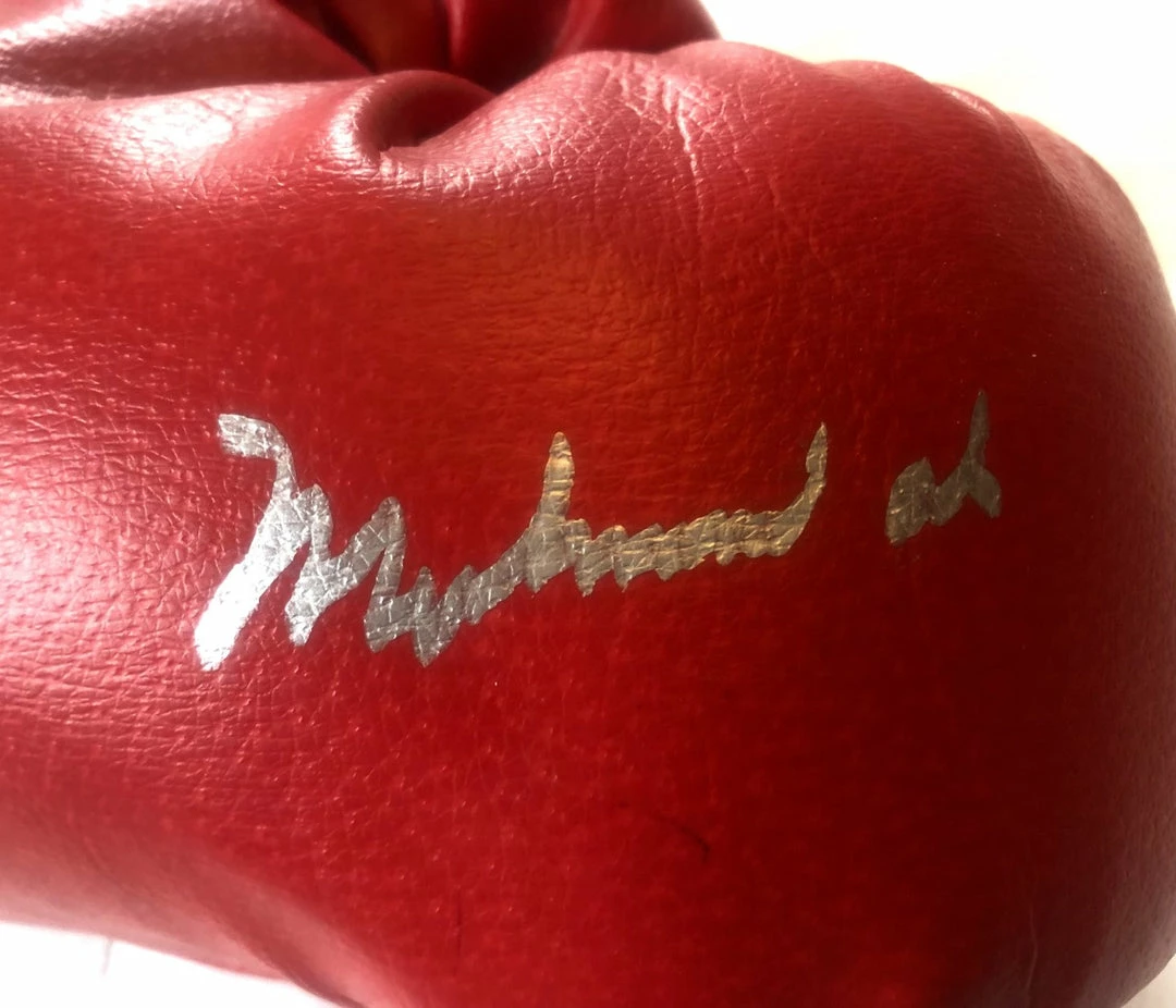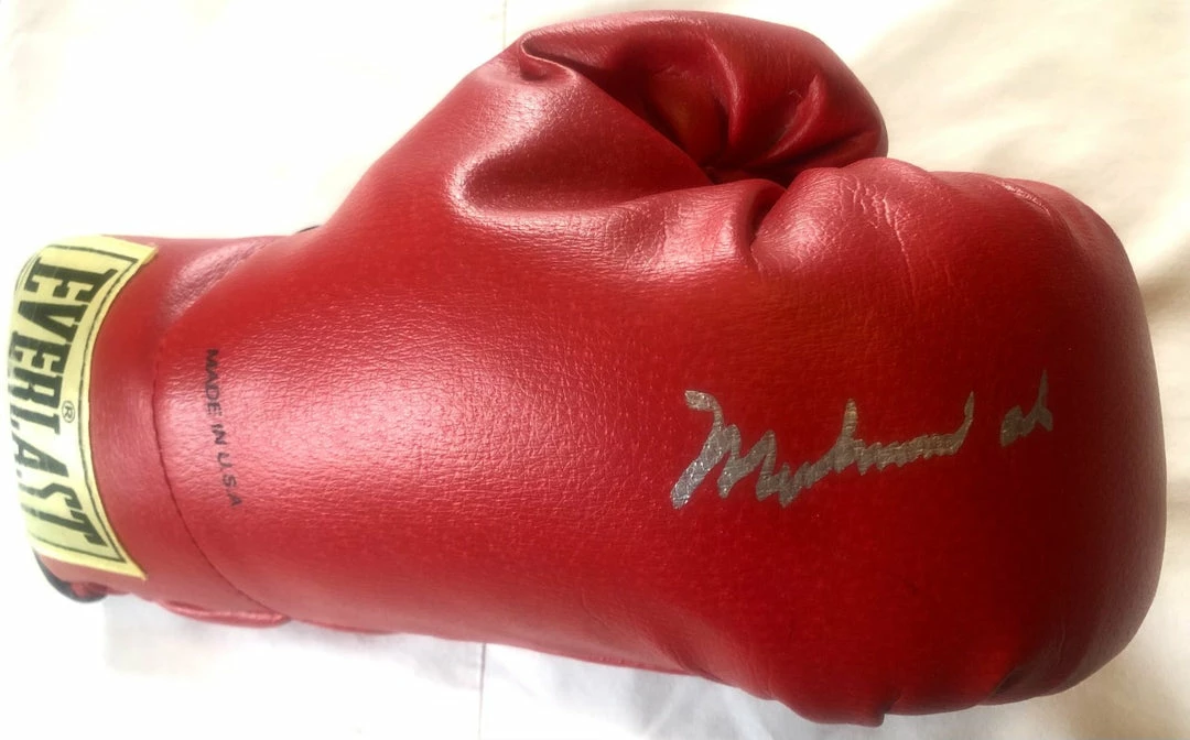 This Rare and Perfect Condition Red Vintage Everlast glove has been personally hand-signed by Muhammad Ali. In a clean and long Silver Beautiful signature. Autograph Comes fully certified with also photo of Ali signing these Gloves.