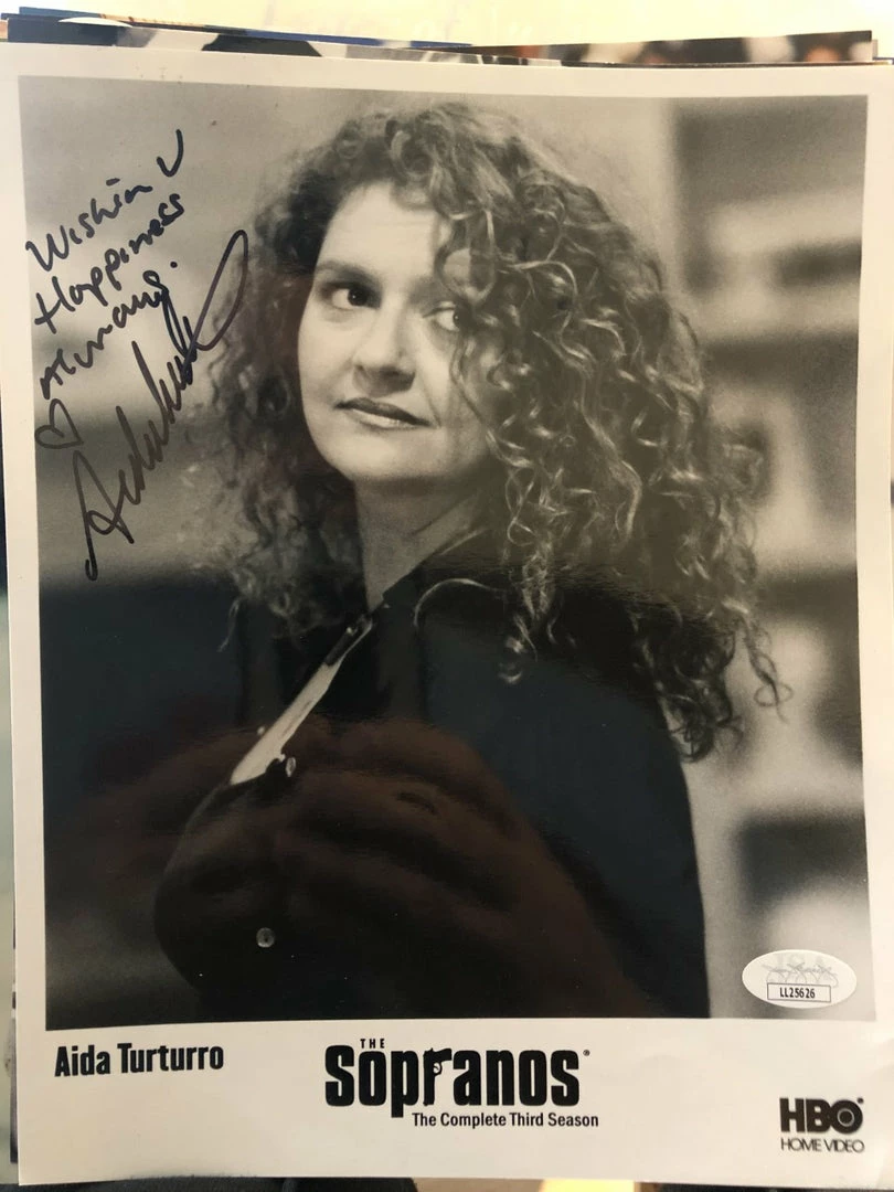 This is a great 8×10 color photo signed by Sopranos star, the Aida Turturro who played Tony Sopranos sister in the series Janice.