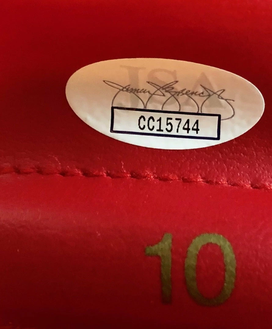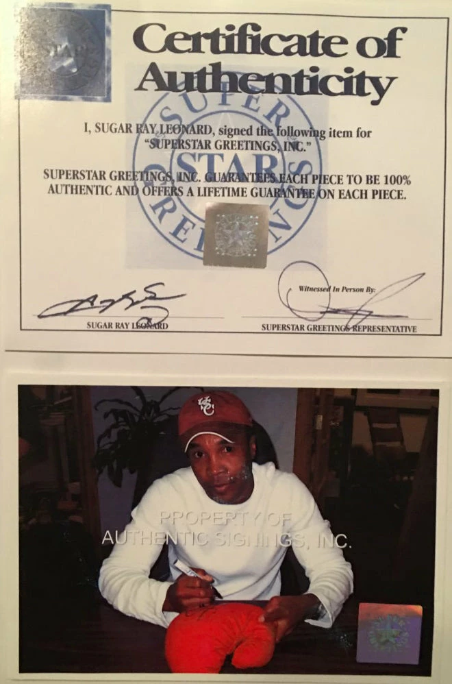 This glove has been personally hand-signed by Sugar Ray Leonard on a red Everlast Boxing Glove. Autographs Comes fully certified and tamper-evident hologram. ASI and JSA certified. Also backed by iconsofboxing.com Authenticity Guarantee.