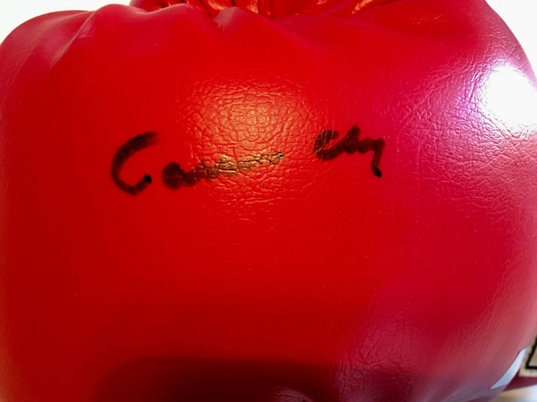 This clean and bold Med size signed Cassius Clay Autograph signature on this Everlast glove has been personally hand-signed by Cassius Clay. Autographs Comes fully certified with SSG Hologram. Certificate of Authenticity and tamper-evident hologram. Also backed by iconsofboxing.com Authenticity Guarantee.