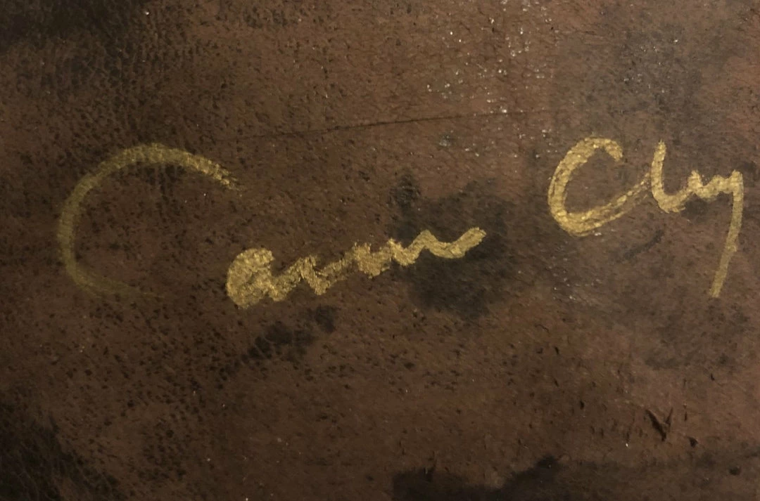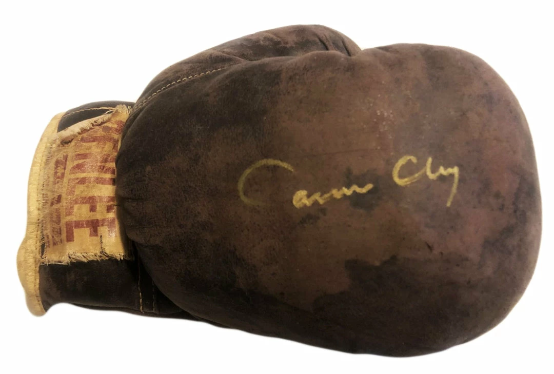 Vintage Brown Boxing glove signed in Gold signature as Cassius Clay. A very Rare piece of boxing memorabilia to find and add to your boxing collection..