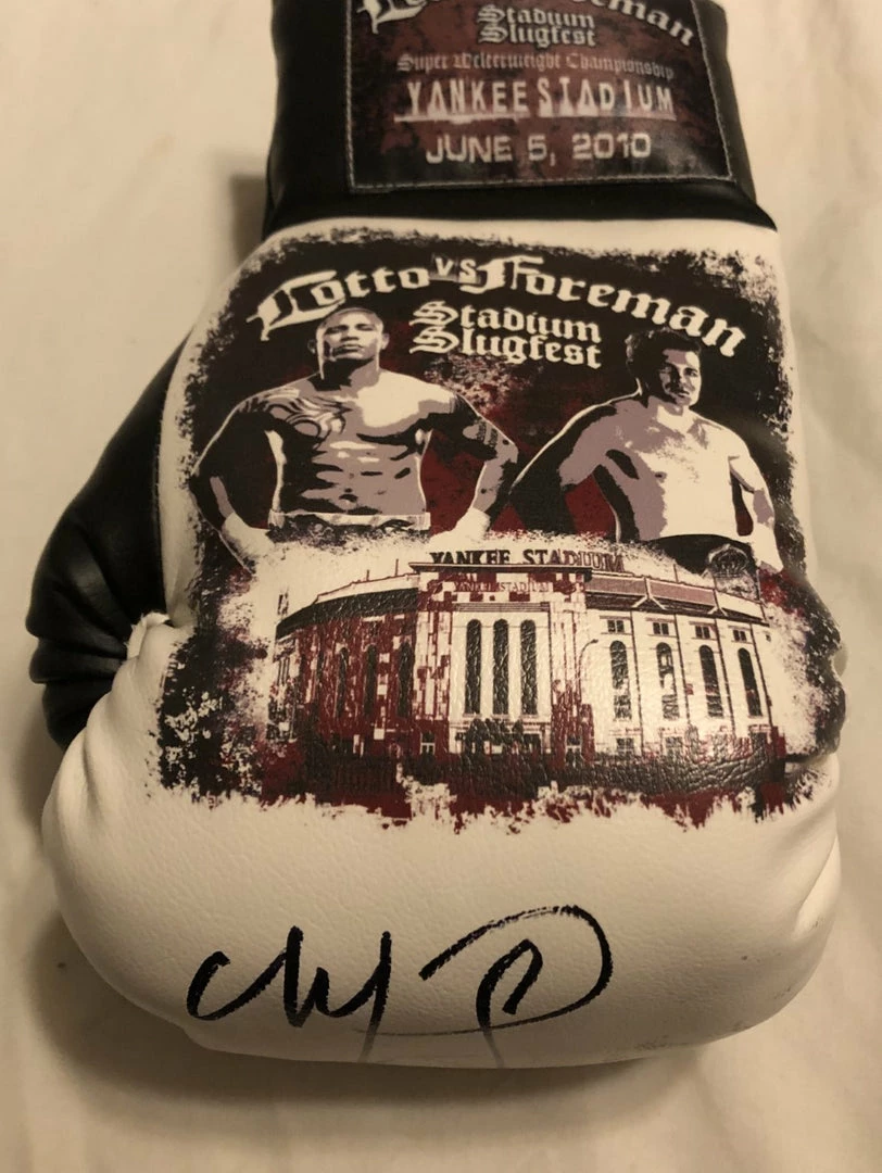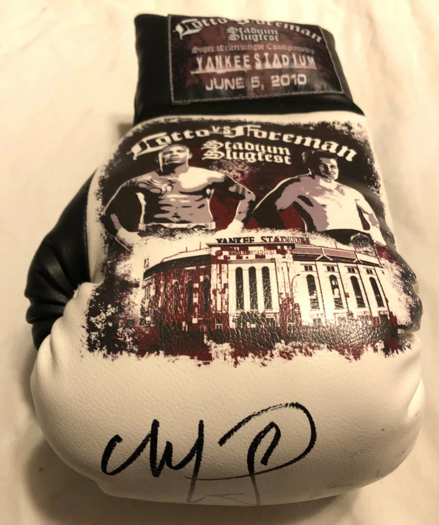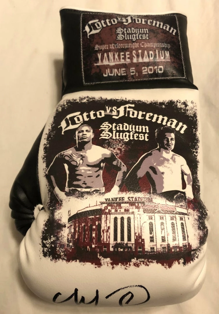 Cotto vs Foreman Autographed and silk screen Custom Boxing Glove. ULtra Rare piece of boxing memorabilia, Collectors Dream piece!
