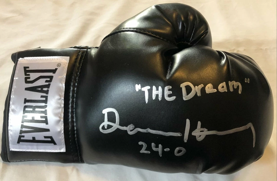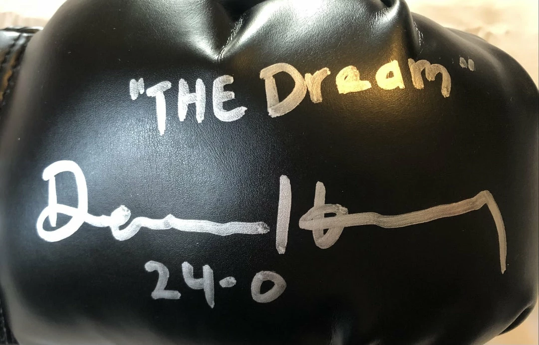 Iconsofboxing.com Devin Haney The Dream Autographed Black Boxing Glove Signed In Silver.