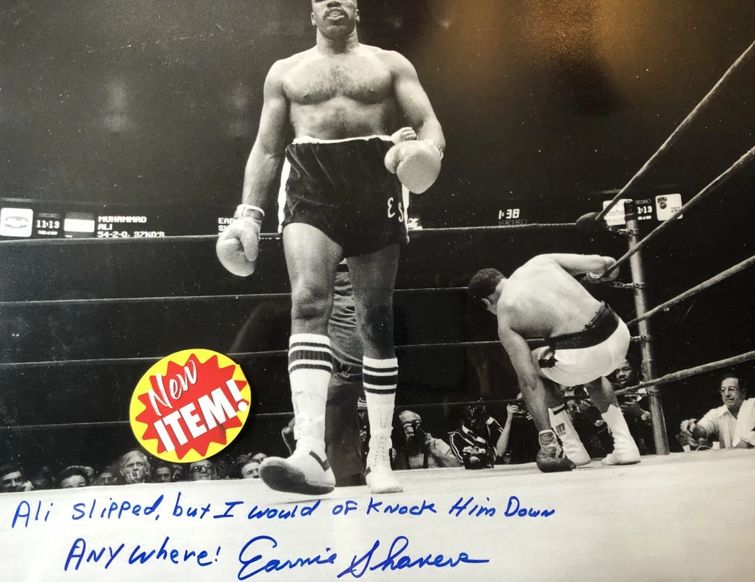 Earnie Shavers vs Muhammad Ali signed Autographed 16 x 20 Photo and dated Limited Edition. Comes fully certified with Certificate of Authenticity. Tamper-evident hologram.