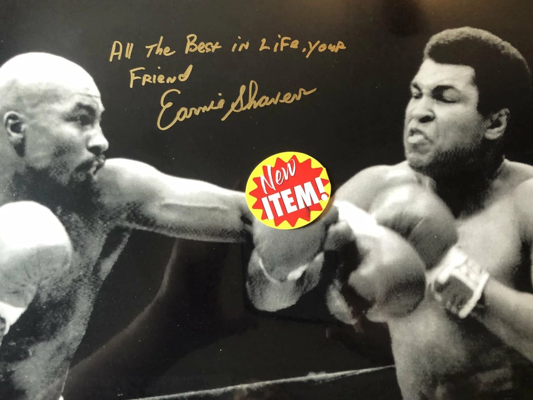 Earnie Shavers vs Muhammad Ali signed Autographed 16 x 20 Photo and dated Limited Edition. Comes fully certified with Certificate of Authenticity. Tamper-evident hologram.