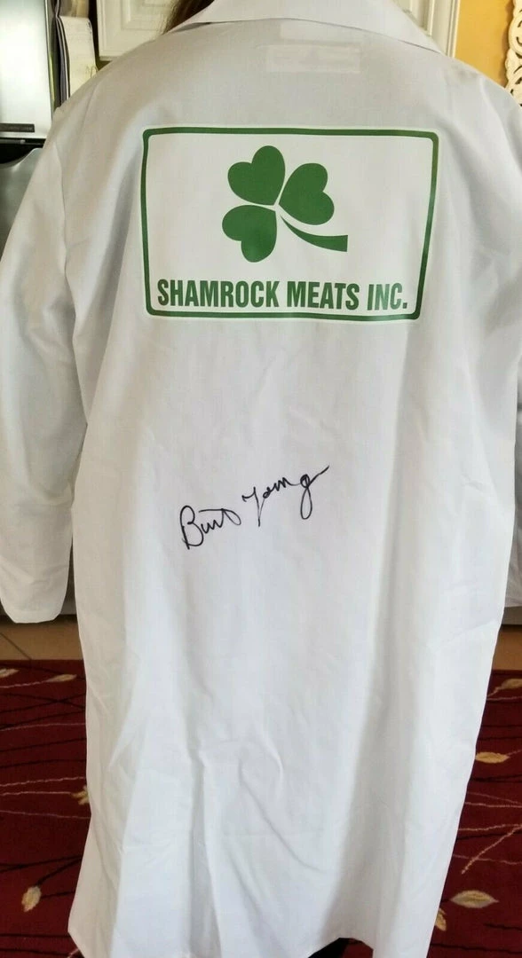 Burt Young signed Shamrock Meats, Inc. butcher coat. A rare item, nice to add to the collection. Comes with a COA |