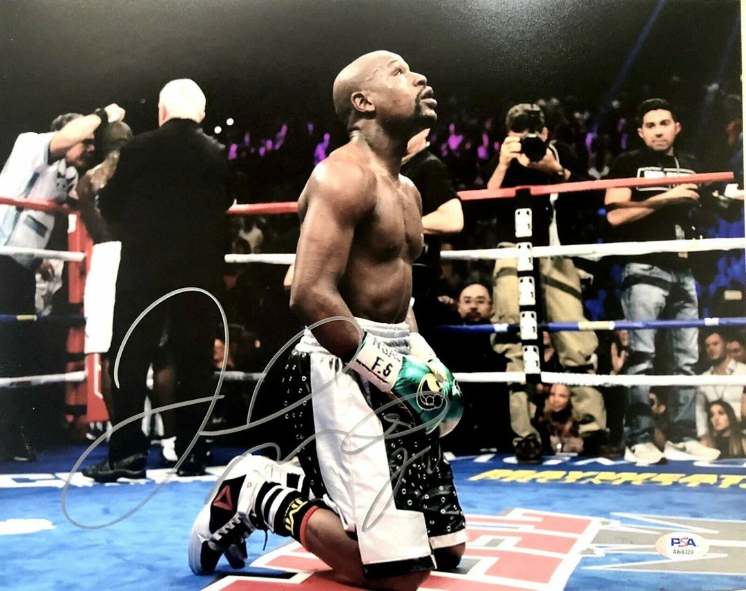 Floyd Mayweather Autographed/Signed 11X14 Winner Photo PSA Signed in Silver.