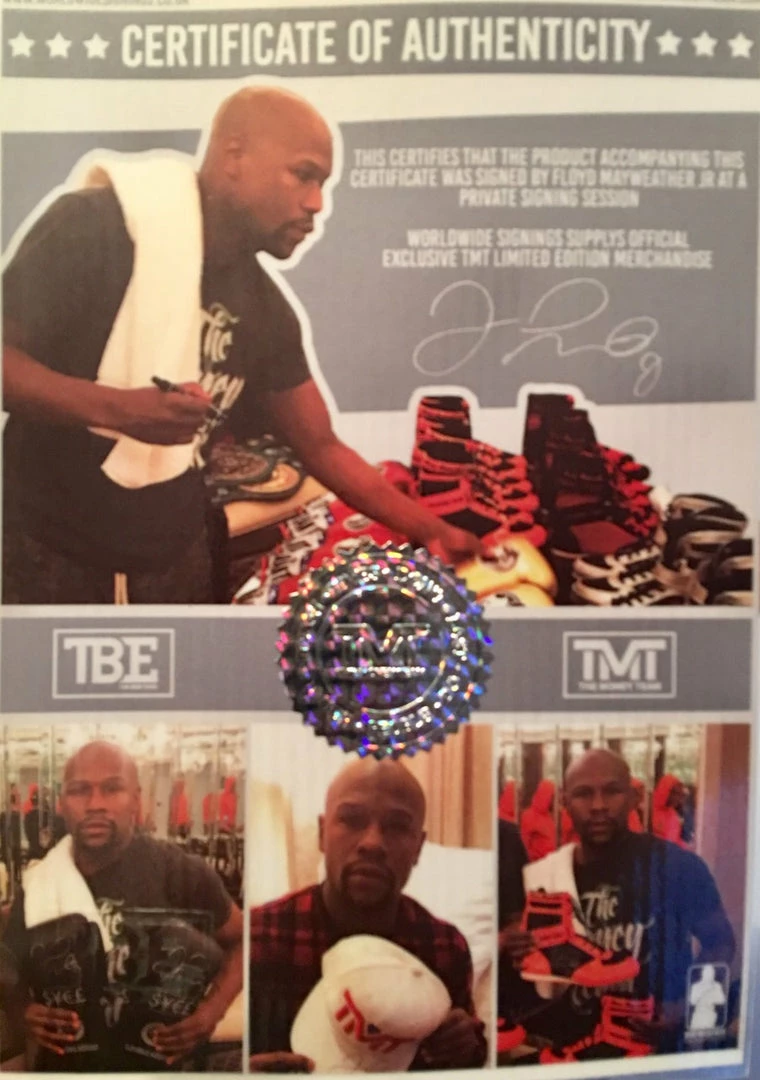 A 11×14 size colored Photograph of Floyd Mayweather Jr. vs Victor Ortiz Hand-Signed Floyd Mayweather Jr. In a Blue Marker. Certified with Sticker on the photo plus our Authentication Guaranteed for life-time.