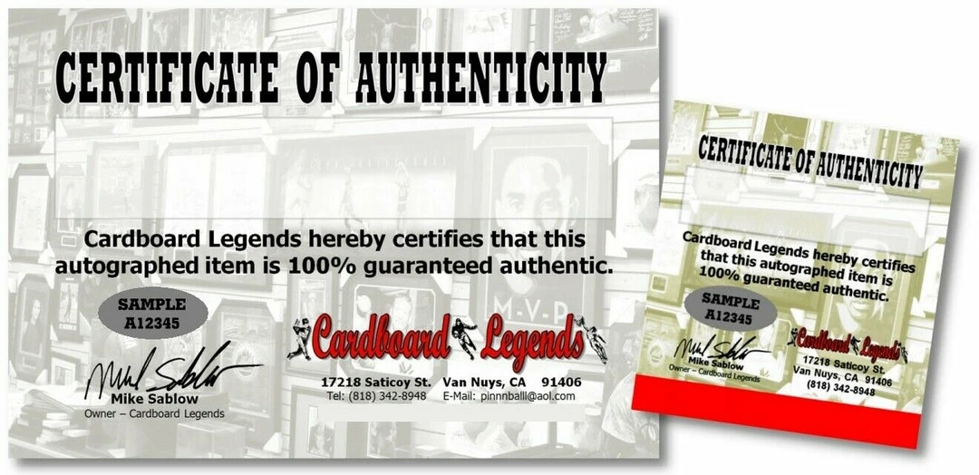 AUTHENTICATED BY: Cardboard Legends All of our autograph items are hand-signed and come with a matching hologram plus certificate of authenticity as listed above.
