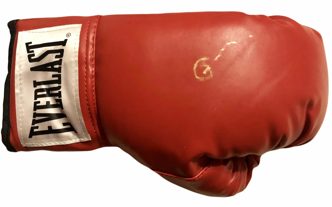 Gerald McClellan Autographed Red Everlast Boxing Glove WBO Champ. This is an Everlast Boxing Glove that has been hand signed by Gerald McClellan. It has been witnessed being signed by us and his sister Lisa McClellan.