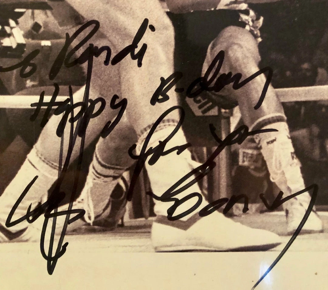 This Gerry Cooney Signed Autographed 8×10 boxing photo vs Ken Norton was signed In Person. Signed In A Bold black Marker. Signatures may vary slightly if we have more than one of the same. Photo that is signed and has extra inscriptions is against Ken Norton. Autographs Comes fully certified and tamper-evident hologram. Also backed by iconsofboxing.com .