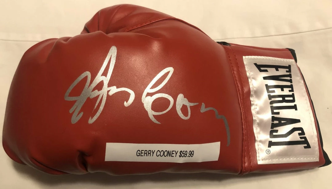 This Gerry Cooney Signed Autographed Red everlast boxing Glove was signed In Person. Signed In A huge Bold Silver Marker. Signatures may vary slightly if we have more than one of the same. Autographs Comes fully certified and tamper-evident hologram. Also backed by iconsofboxing.com .