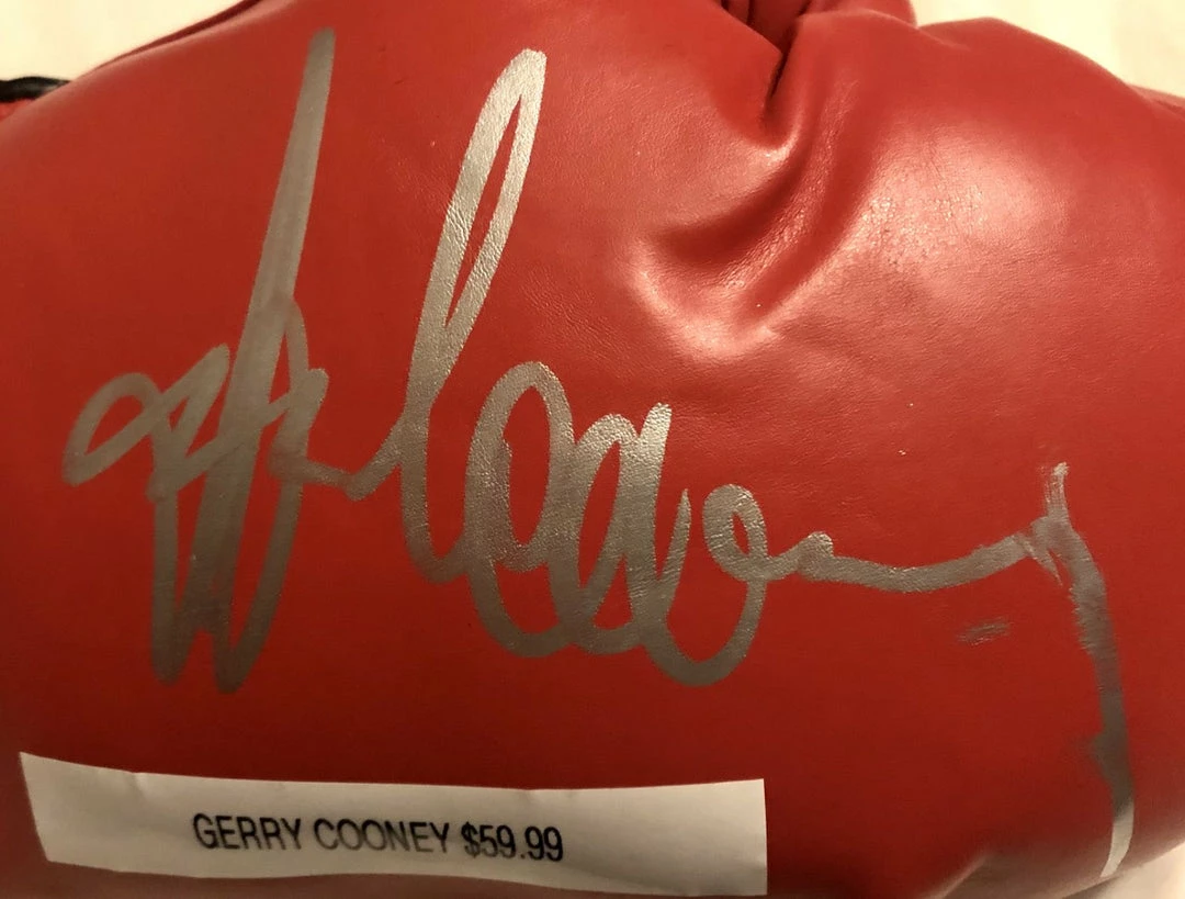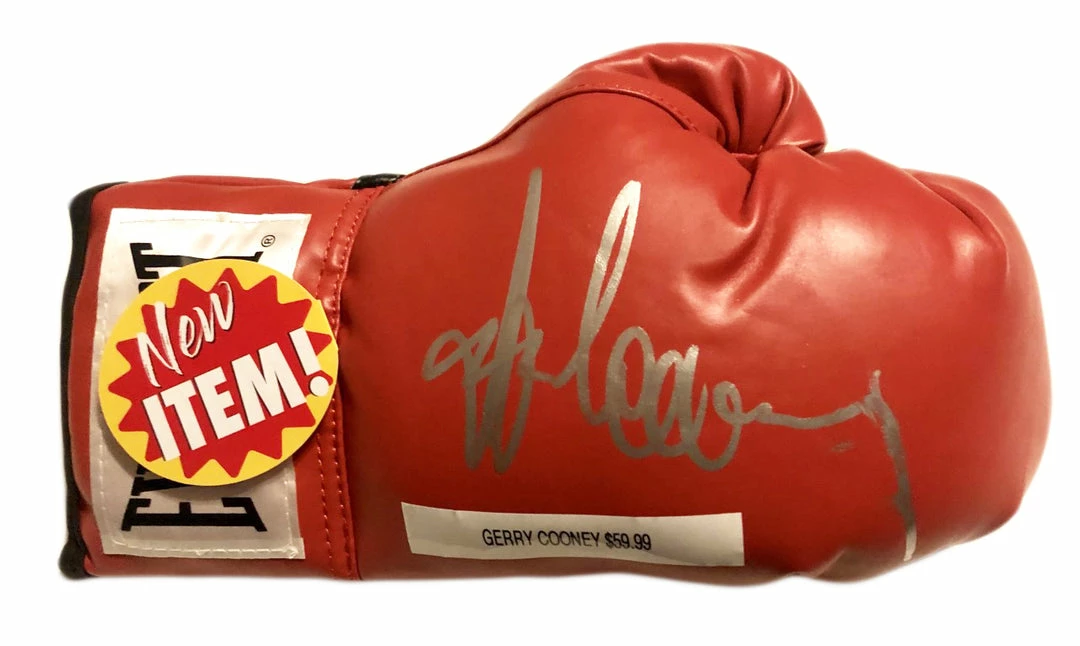 This Gerry Cooney Signed Autographed Red everlast boxing Glove was signed In Person. Signed In A huge Bold Silver Marker. Signatures may vary slightly if we have more than one of the same. Autographs Comes fully certified and tamper-evident hologram. Also backed by iconsofboxing.com .