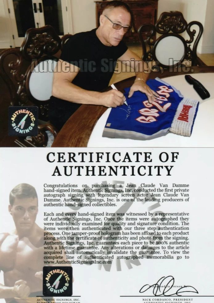 Jean-Claude Van Damme Autographed rare signed Karate Trunks ASI certified, with proof of actual photo with ASI the Best company around.