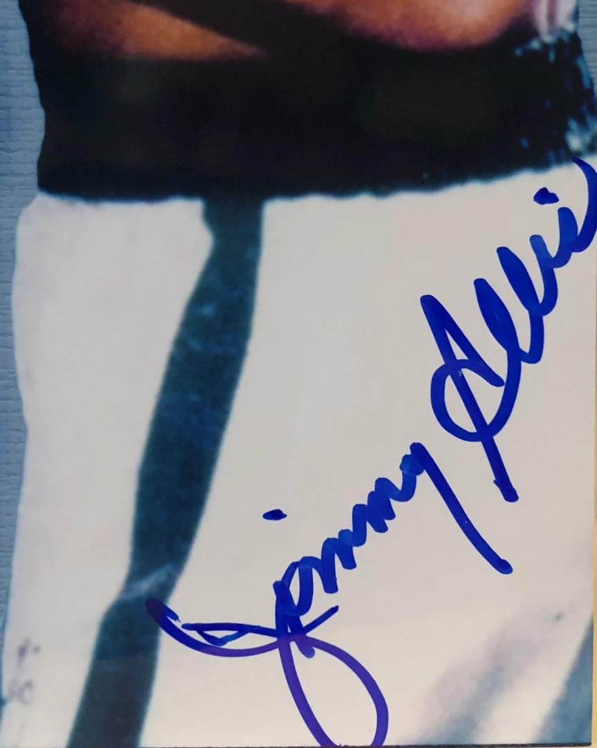 This Ultra Super Rare Jimmy Ellis Autographed signed a 8 x 10 size color Photo, RARE!, on the front cover has been personally hand-signed by The Champion Jimmy Ellis and Autographed in Blue ink signature. Jimmy Ellis has had fights against Joe Frazier and Muhammad Ali.