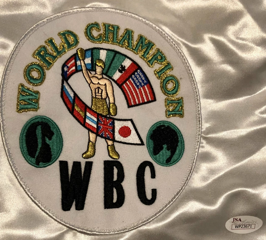 Hand Custom Made Boxing trunks is Signed by one of the best legends in boxing, the Great iconic boxer Julio Cesar Chavez Sr. Rare and a must have to add to your Boxing sports collection. Will come with Tamper Proof Sticker and Certification. Check out our other Autographed Boxing memorabilia and rare boxing collectibles.