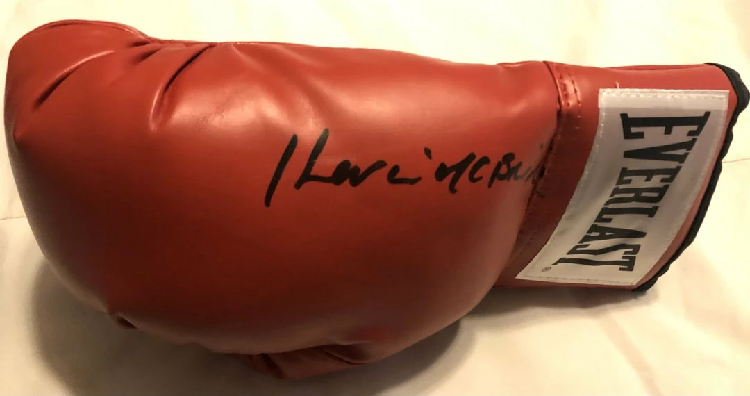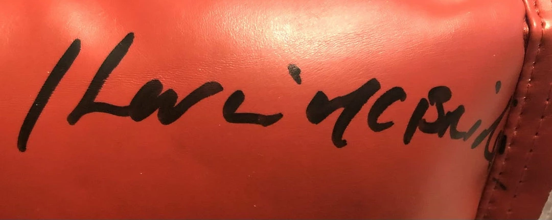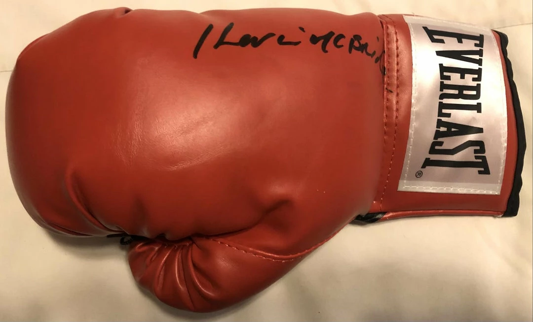 This Kevin McBride Signed Autographed Red and black everlast boxing was signed In Person. Signed In A huge Bold black Marker.