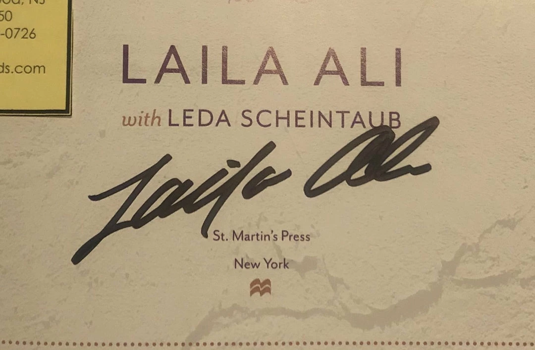 This Ultra Super Rare Laila Ali Autographed signed Rare Book collectors are looking for to add to there memorabilia collection. Inner cover has been personally hand-signed by Laila Ali in black signature. Autographs Comes fully certified Certificate of Authenticity and tamper-evident hologram. Also backed by iconsofboxing.com Authenticity Guarantee.