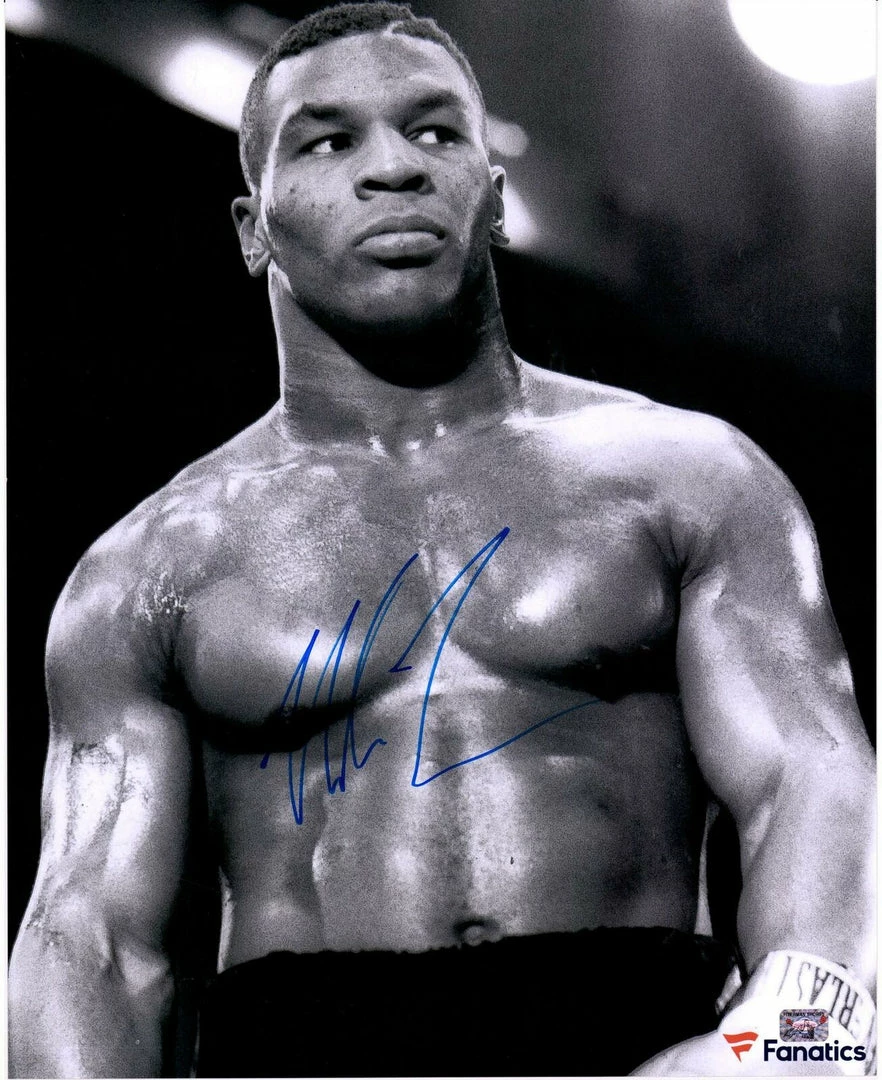 Mike Tyson Autographed 16″ x 20″ Black & White Fighting Stance Photograph – Fanatics Authentic Certified.