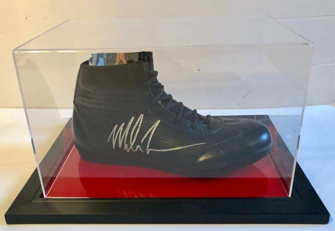 This Mike Tyson Autographed Rare Black Custom made Boxing Boot JSA Certified, has been personally signed by Mike Tyson and JSA Certified. Signed In Bold Silver Marker. Autographs Comes fully certified and tamper-evident JSA Sticker. Also backed by iconsofboxing.com Authenticity Guarantee. Photo of Signing available. This is From my very own Collection!