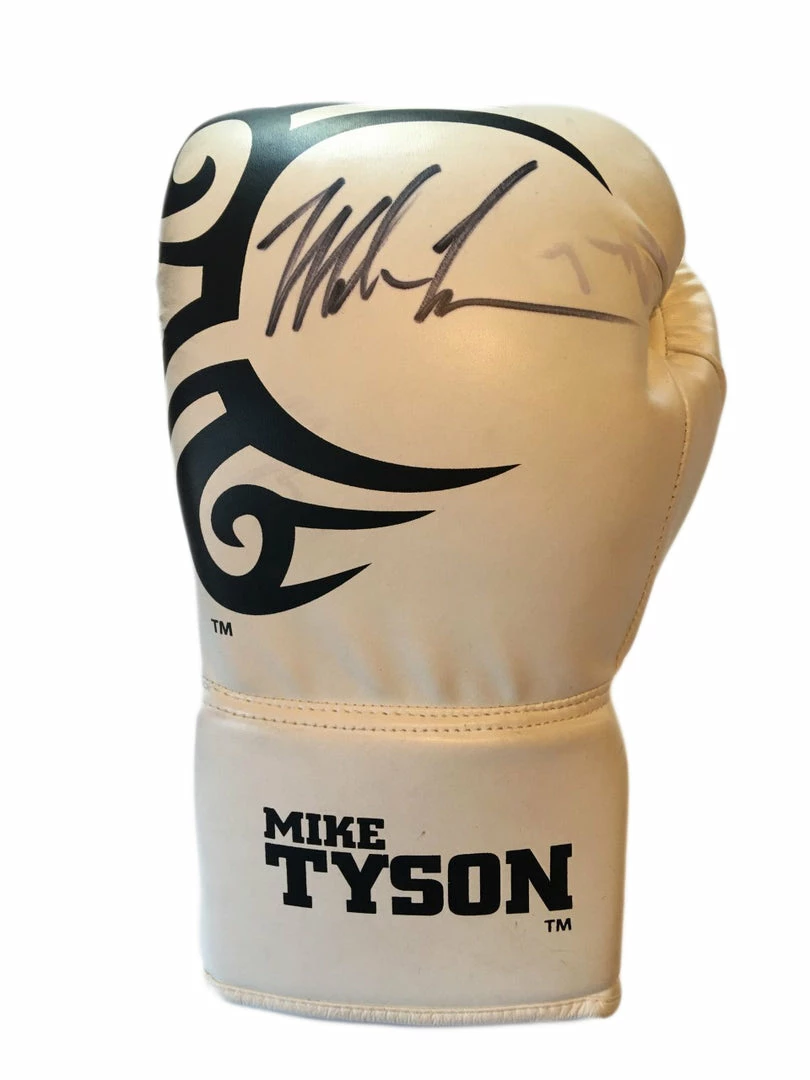 This Custom Tyson White Boxing Glove has been personally signed by Mike Tyson. Signed In Black Marker. Autographs Comes fully certified and tamper-evident hologram. Also backed by iconsofboxing.com Authenticity Guarantee.