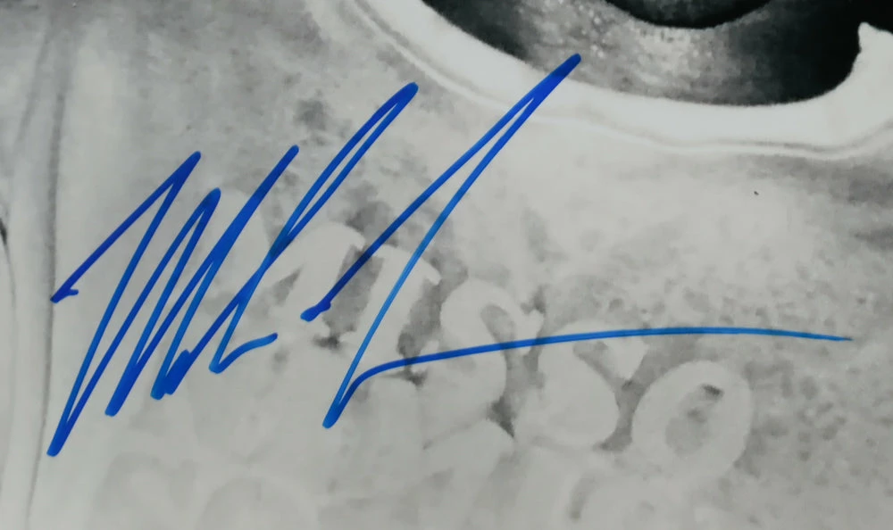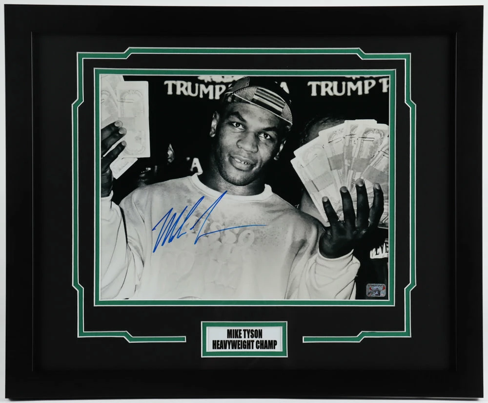 Custom frame measures approximately 18″ x 22″ in size and features a photo hand-signed by Mike Tyson (HOF).
