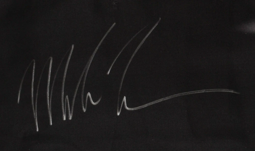 Boxing robe has been hand-signed and inscribed in silver paint pen by Mike Tyson (HOF).