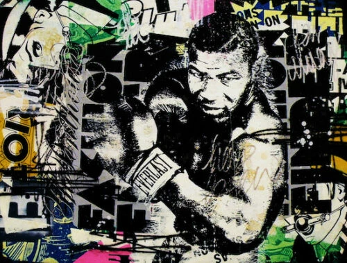 Mr Brainwash oil Painting on Canvas graffiti art Mike Tyson Boxing 28×36″