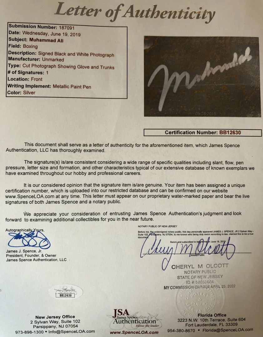 Authenticated by: JSA and SSG, Backed by our www.iconsofboxing.com Guarantee.