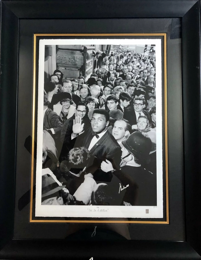 Appraised by Park West galleries for $5,500.00 This is a great example of Ali’s Life in London, # IN STOCK… Photo is Called “One in a Million” as Far as a great Silver signature with a great Investment in a Ali Gigantic rare size photo. Retail Value may be in the upwords of 6K Plus Muhammad Ali Company Cert (MAE) Ali co. Limited Edition Framed Photo, I have 3 in stock!