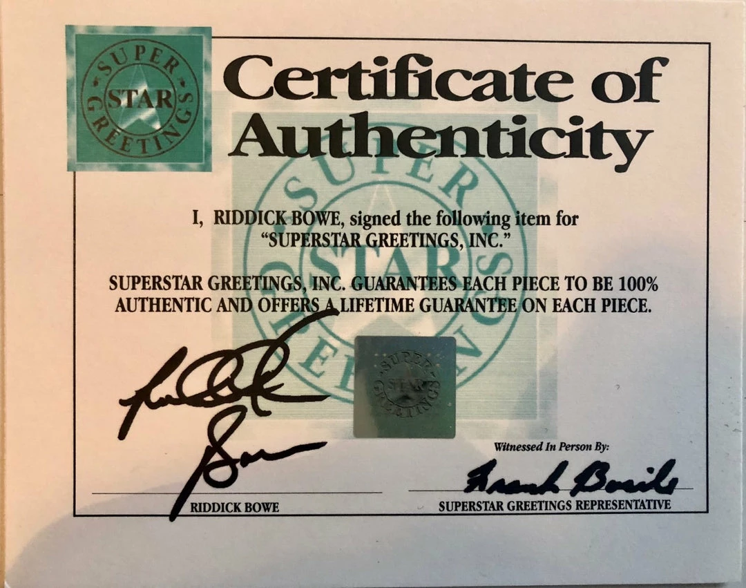 Photo measures 8 x 10 in size and has been hand-signed in silver paint pen by Riddick “Big Daddy” Bowe.