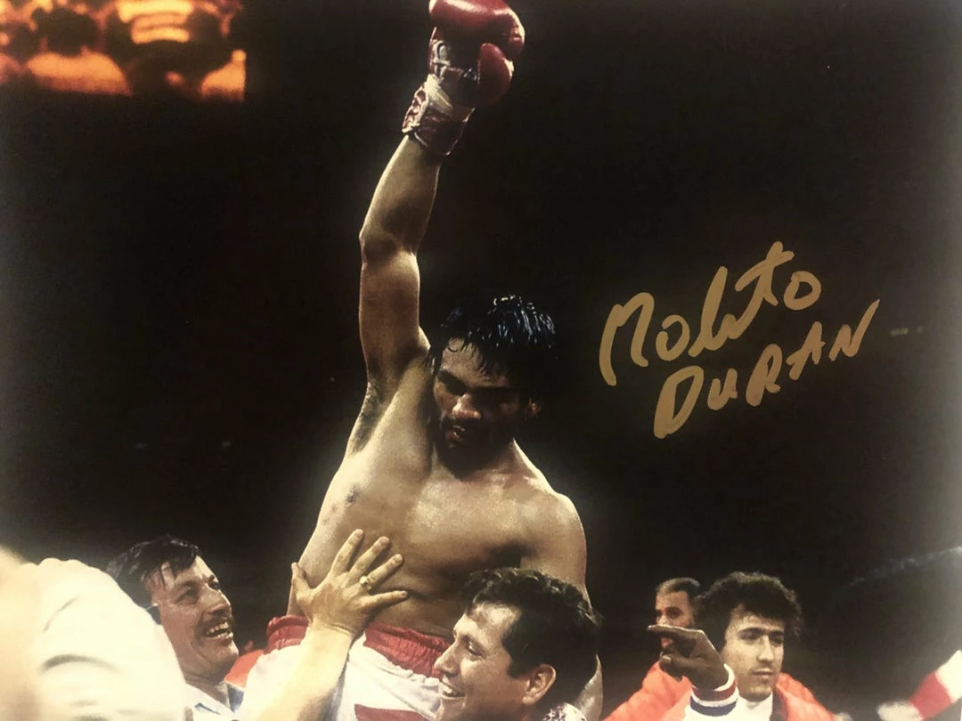 Roberto Duran Autographed Signed boxing 8×10 Championship photo.