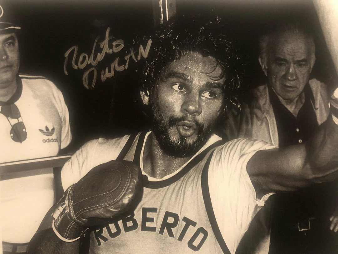 Roberto Duran Autographed Signed boxing 8×10 training photo.